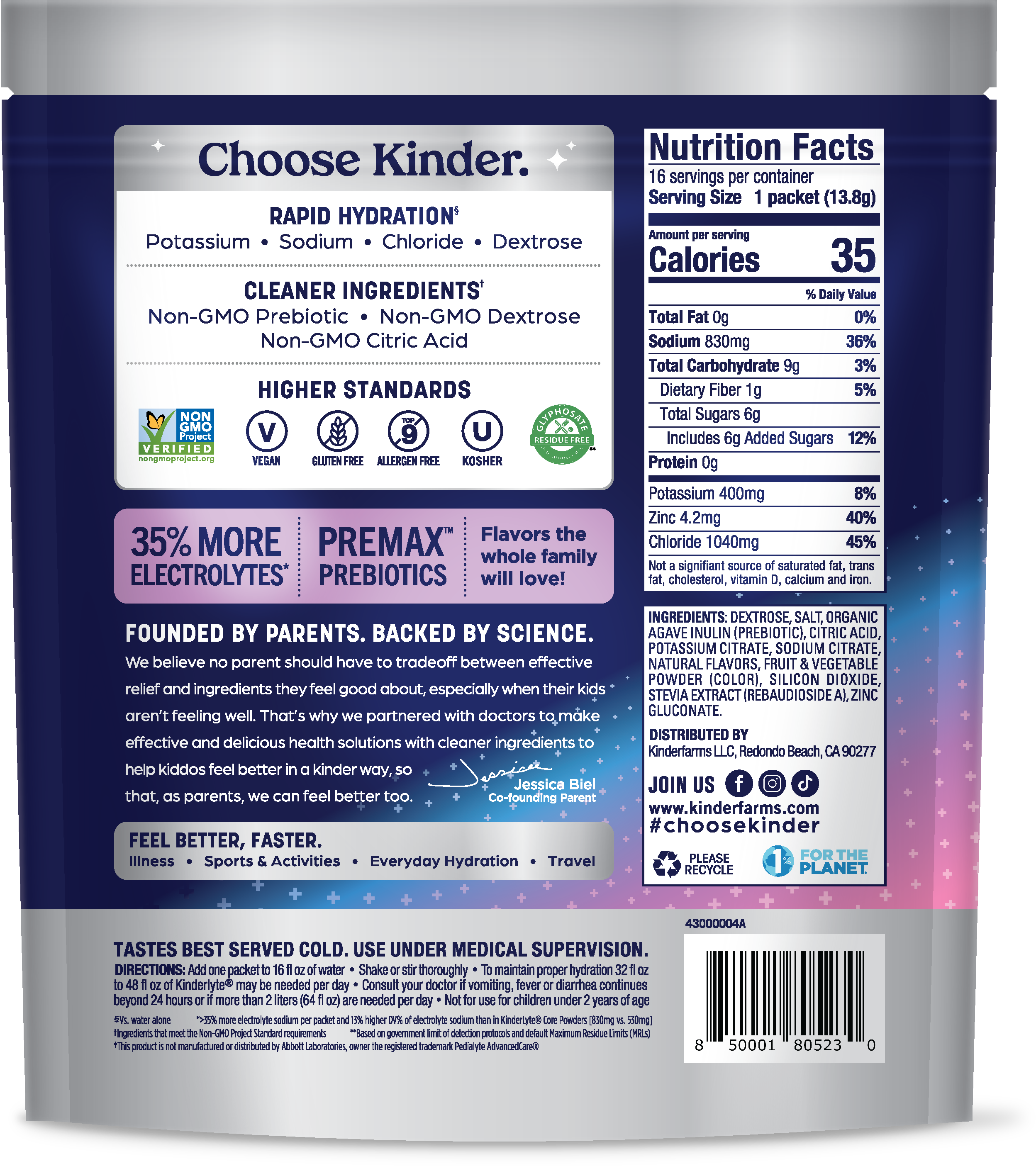 - CLEANER INGREDIENTS - Created with kids in mind, great-tasting KinderLyte provides the hydration and immunity support you need with no synthetic dyes, no artificial sweeteners, and no artificial flavoring; made with ingredients that meet the Non-GMO Project standard requirements