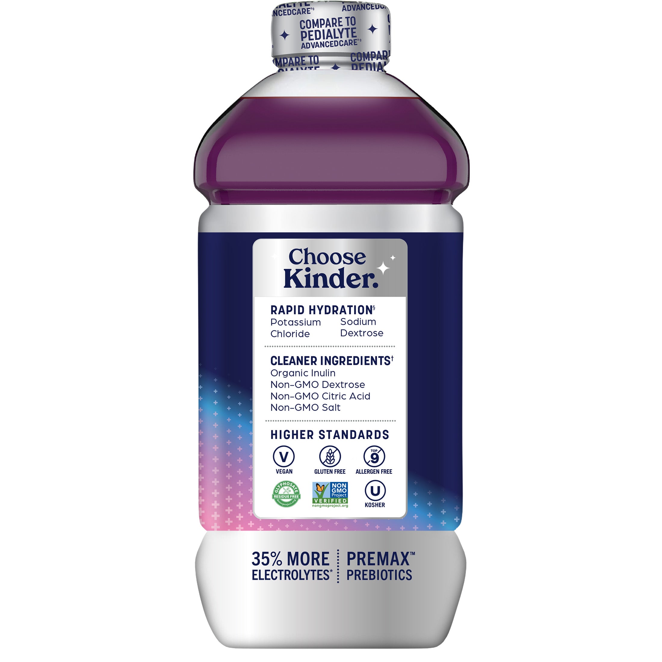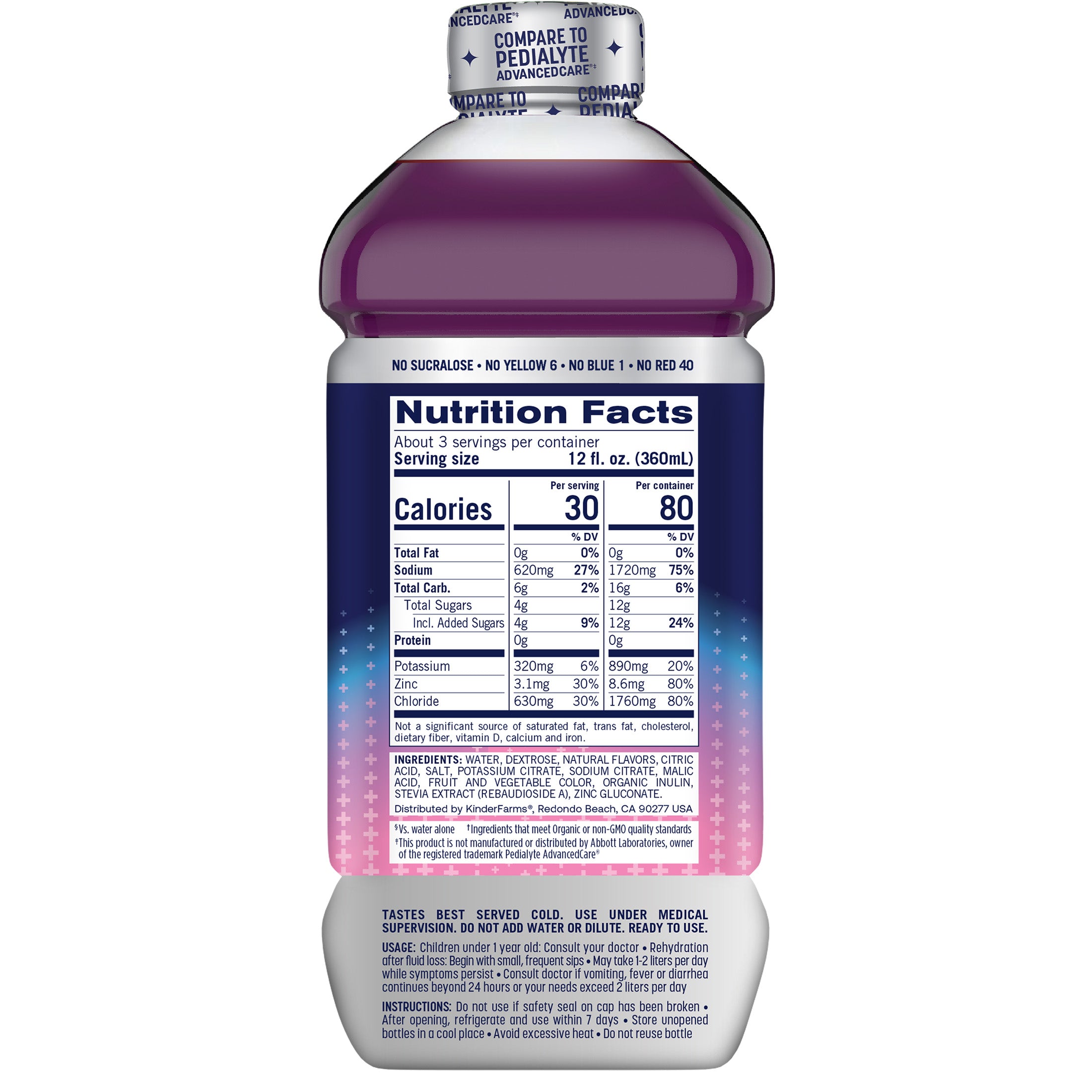 - FAST HYDRATION - With PreMax prebiotics, KinderLyte Advanced electrolyte solution works 2 times faster than water alone, thanks to a mix of electrolytes (including potassium and chloride) and glucose; contains 35% more electrolyte sodium than our original formula and 70% less sugar than the leading sports drink